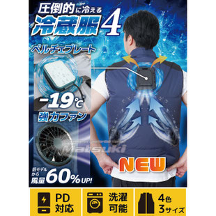 背中の冷却ファンによって熱気を効率良く体の外に排出。